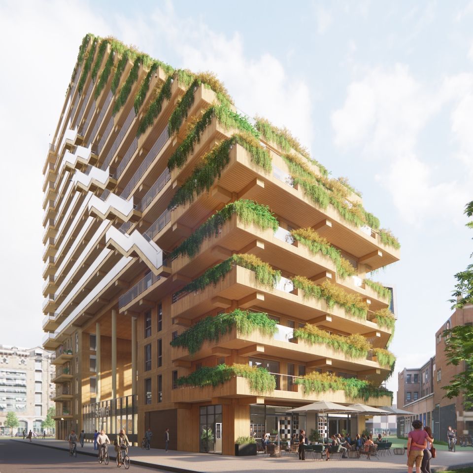 SAWA is het eerste houten woongebouw van ruim 50 meter hoog in Rotterdam. Én het gezondste! Bouwen met hout is beter voor het milieu en zorgt voor een fijne woonsfeer. Net als de weelderige beplanting op de terrassen, het dek en rond het gebouw. Goed voor jou én de biodiversiteit in de stad. Hoe dat allemaal werkt, lees je in de brochure over SAWA.